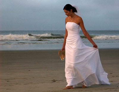 A beach wedding sound exciting and have lot of wedding dress options for a bride. For your beach wedding you can set a stylish theme like Hawaiian theme, carnival theme etc or simply keep it informal and casual for the day, this is the first job to be done for your beach wedding. Once you have decided the theme dress accordingly or dress like Gypsy for the day, with lots of velvet and satin or a long grown and horse to ride like fairy tale bride. Or else totally informal dress to wear like swimsuit, pick any color of your choice and cover it with a sarong, or soft translucent caftan style sheath dress. So, as soon as wedding ceremony is over everyone can have a swim to cool off before the reception begins. When planning for beach wedding you can not forget to pack, emergency swing kit, shoes, mineral make-up, and most important your wedding dress. Be careful while packing your dress, pack in a protective cover to avoid any damages or creases to the dress. To pick a beach wedding dress you have to be more careful as you can not pick anything which is uncomfortable and end yourself in a mess. Do not pick too long gown, pick lightweight material like chiffon, silk, linen or satin to look elegant. For beach wedding apart from wedding dress special attention should be given to your footwear. Wedding dress looks stylish with long heels but they would be impractical to be worn on a beach. Brides should wear flat shoes or flip flop sandals matching with your wedding dress. The key to select beach wedding dress is that it should be light, cool and very comfortable. Pick a romantic simple dress without compromising grace and style.if want to read more, here